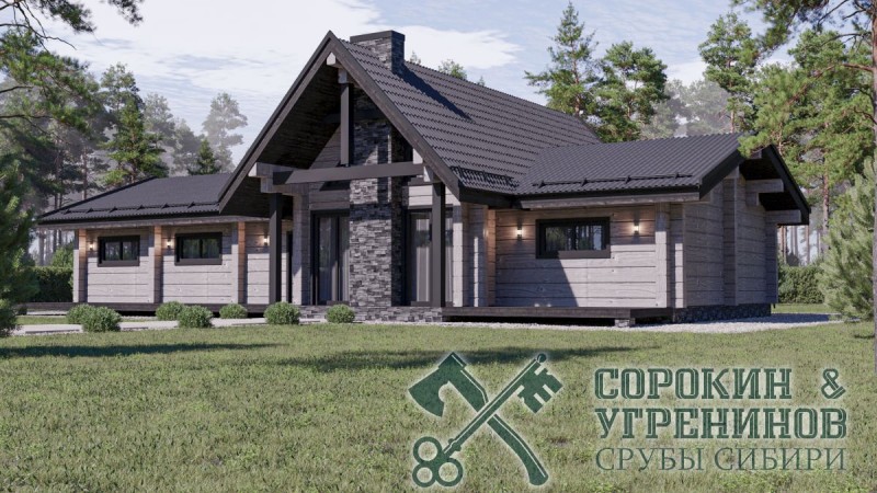 Индивидуальный проект жилого дома из лафета сечением 250х400мм. Общая площадь дома 250м2. Одноэтажный дом имеет несколько комнат, некоторые внутренние стены выполнены по каркасной технологии, что экономит стоимость сруба и увеличивает внутреннее пространство дома. Возможно сделать антрессоль, что позволит увеличить площадь дома, сделать дополнительные спальные места.